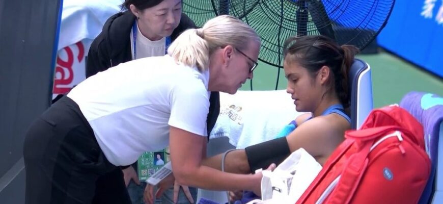 A estrela do ténis Emma Raducanu foi forçada a abandonar o seu jogo de abertura no Open de Wuhan, solicitando uma pausa médica durante o segundo set.